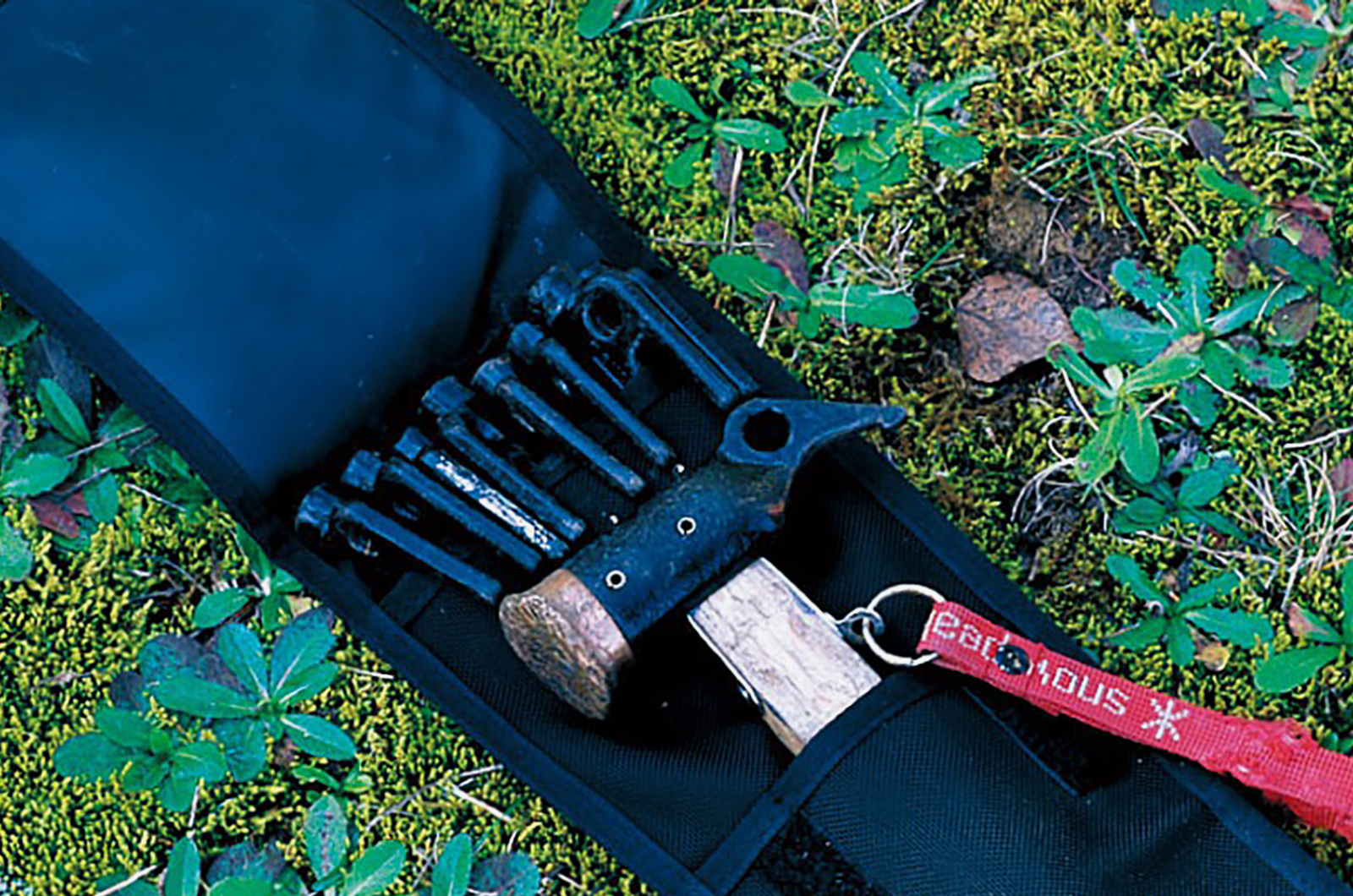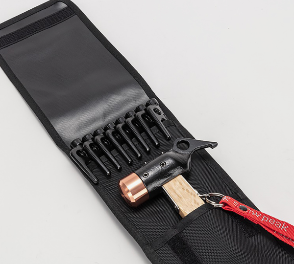 This peg hammer case is crafted from durable nylon fabric and designed in Japan to organize and protect your stake-driving tools. It features separate compartments for both pegs and the hammer to streamline storage and transport.