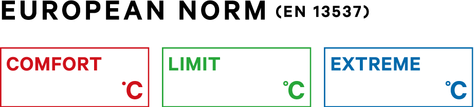 For temperature ratings, NANGA uses the uniform standard used in European countries (European Norm).