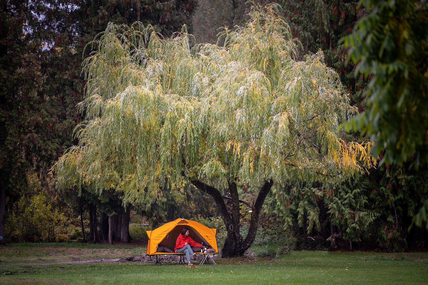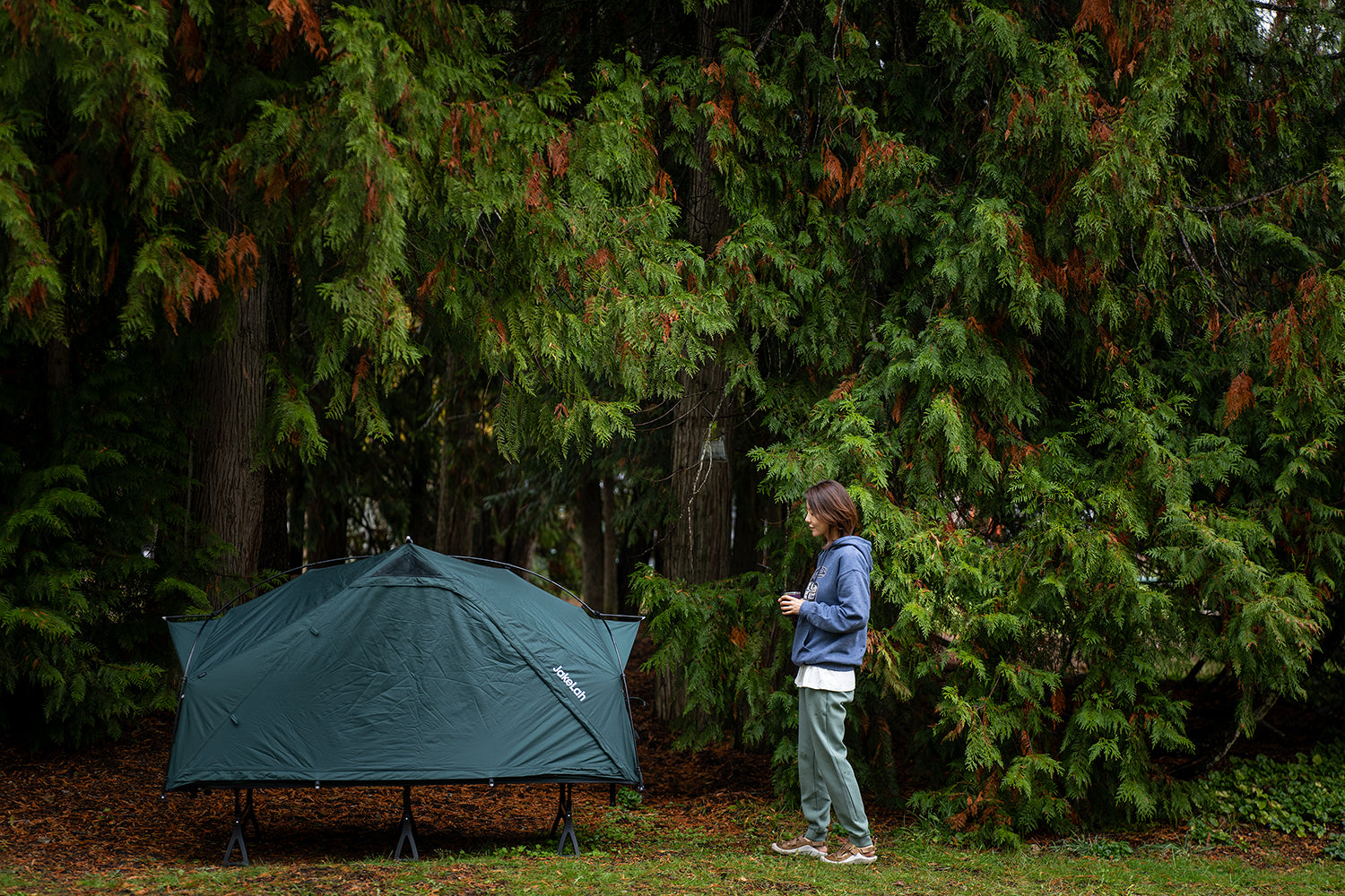 Weighing just 5.5 lbs, the J.cot Tent is built for backpacking and solo adventures. Its TR and Horn frame design creates a tall entryway for easy access, while a top ventilation window helps reduce condensation and keeps the space feeling open.
