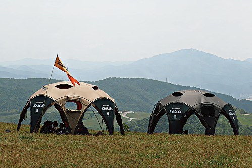 A 16.4-foot dome shelter with near-vertical walls and a 9-foot ceiling, the J.crown offers spacious comfort for small to mid-sized groups. Despite its size, it’s lightweight, wind-resistant, and can be set up by two people in about 20 minutes.