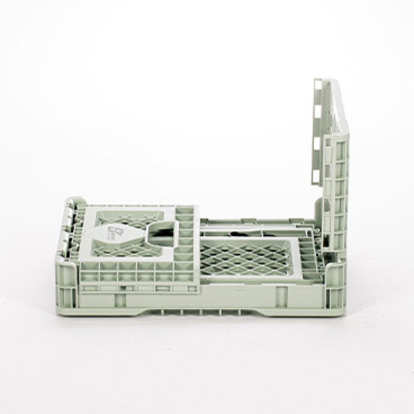 Features an interlocking nesting system for stable vertical stacking, allowing multiple crates to be stacked securely.