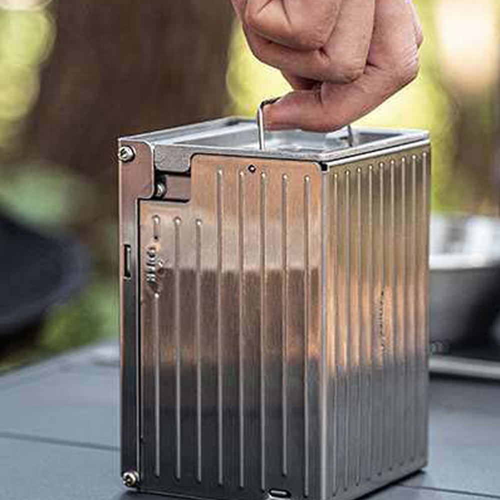 This ultra-compact stove folds down to the palm of your hand yet delivers full-sized cooking power with a powerful, wind-resistant concave burner and rock-solid stability for large pots, all in a durable stainless steel body.