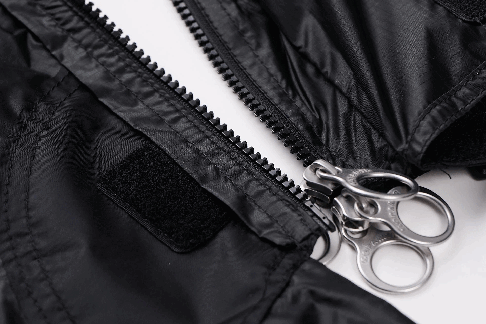 * Securing the lower zipper slider with the toggle prevents the zipper from coming undone.