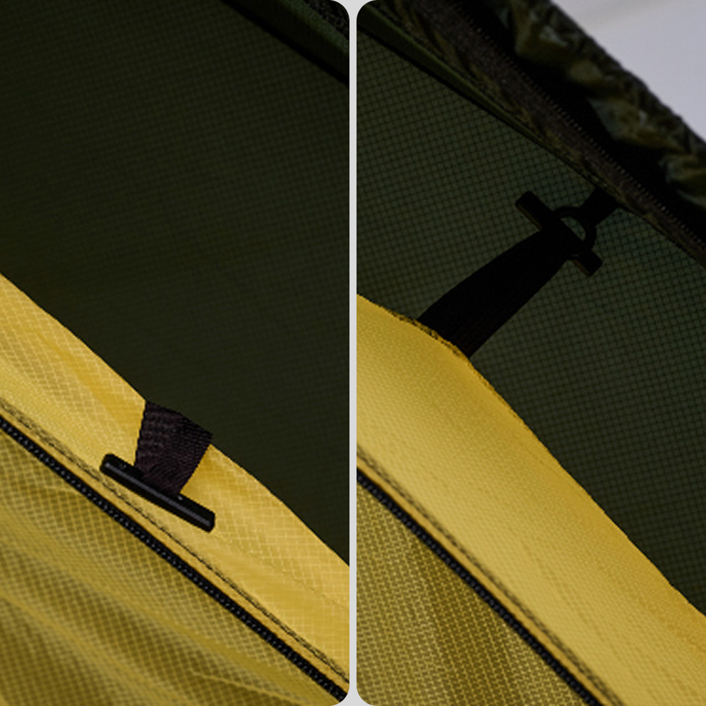 The Double Wall Tent C240 features an intuitive toggle connection system that makes setup fast and effortless. Simply attach the inner tent to the outer shell with the secure toggles—no complex clips or tools required. This design enhances convenience while maintaining a stable, taut structure in any environment.