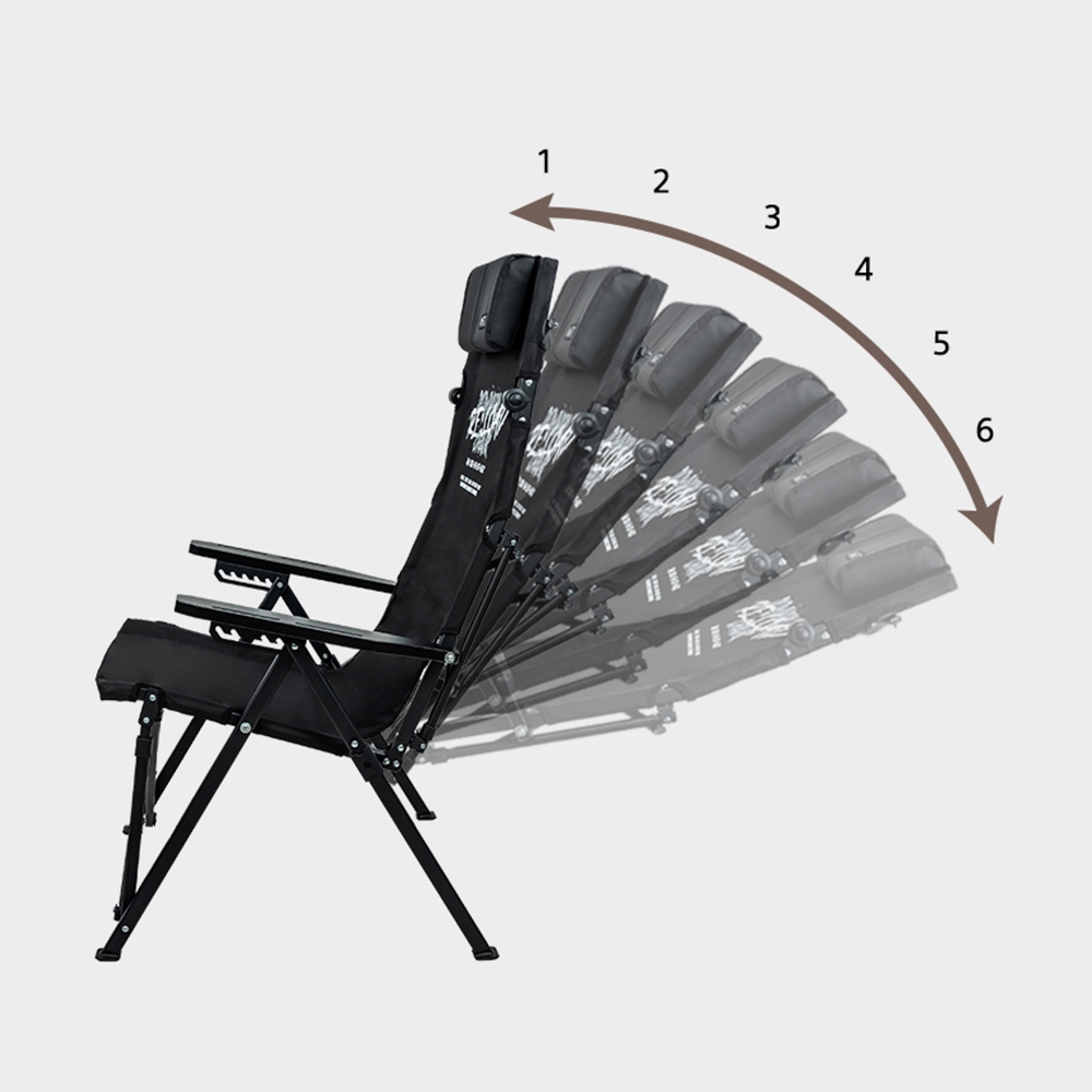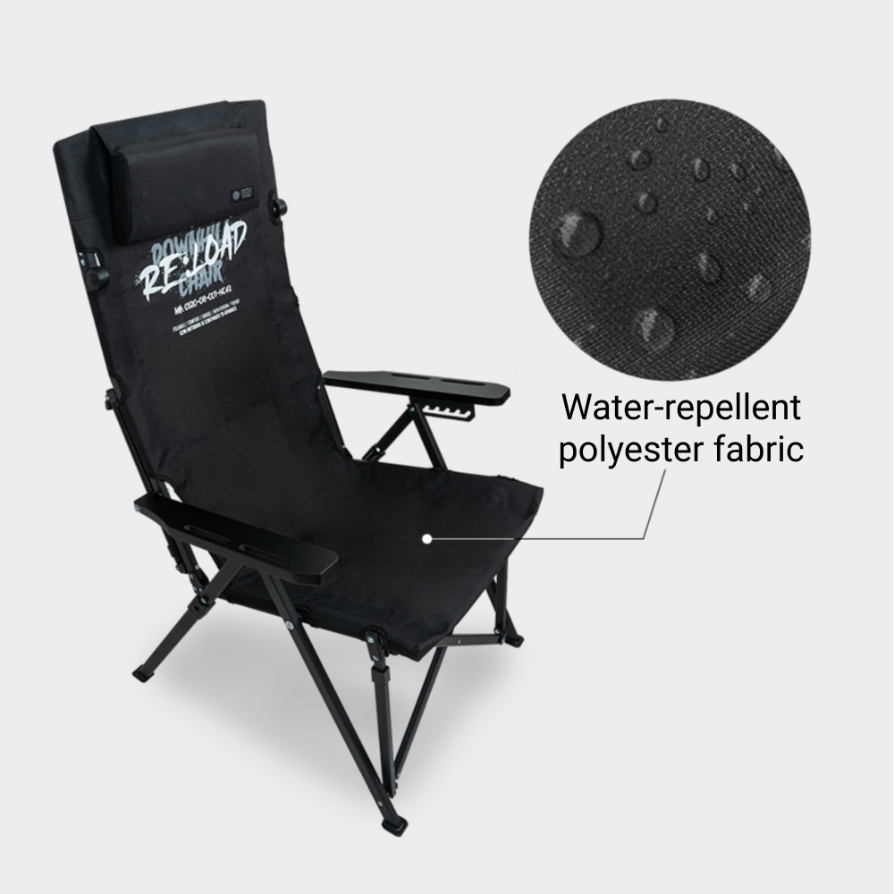 Relax in style anywhere with the Down Hill Chair Reload Plus. Featuring a 6-step adjustable recline, durable solid wood armrests with multifunctional grooves, sturdy aluminum frame supporting up to 220lbs(100kg), water-repellent polyester fabric, foldable head gear for compact storage, and a detachable neck cushion, this chair combines comfort, convenience, and premium outdoor design.