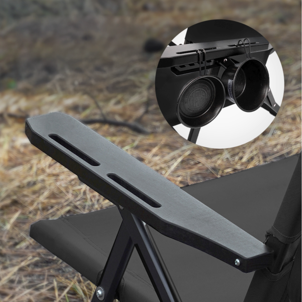 The chair armrests are crafted from high-quality, durable solid wood for strength. Additionally, the multifunctional groove on the handle allows you to hang camping items, making it both practical and convenient.
