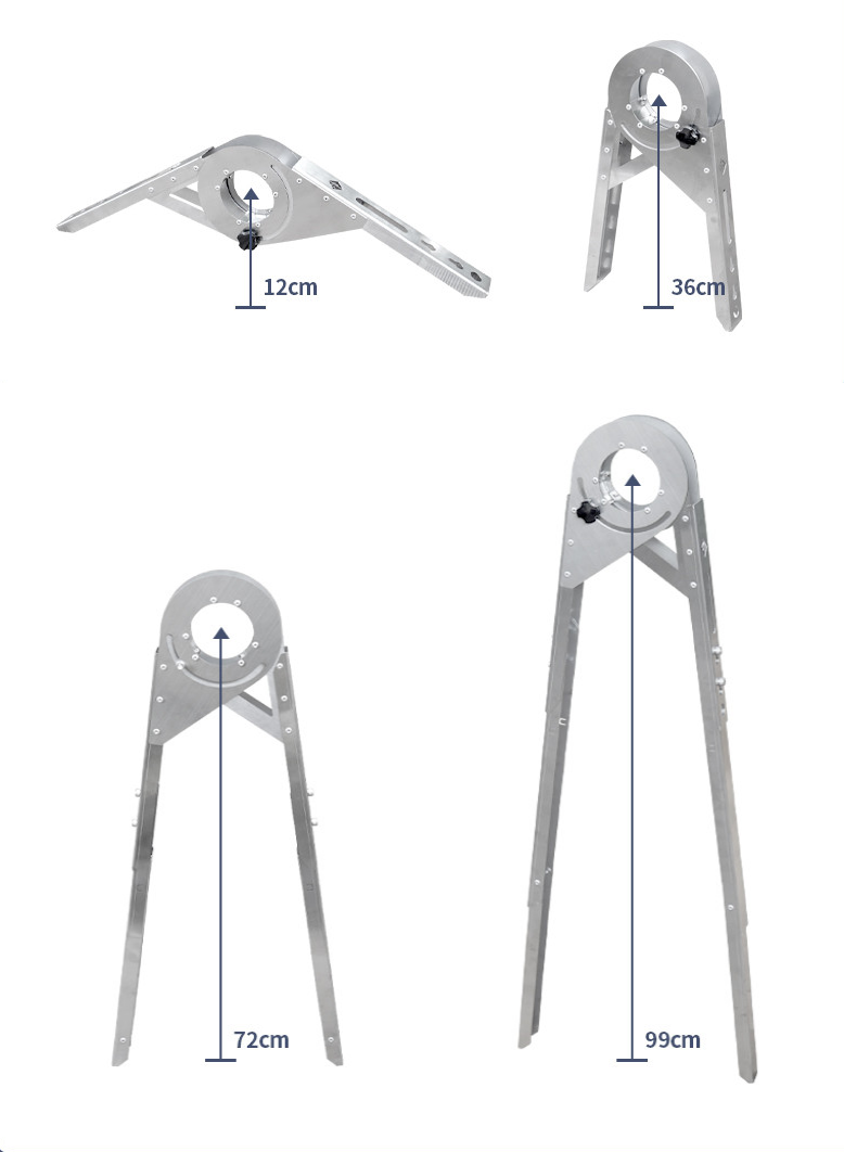 - Hauteur réglable : L'unité principale peut être installée à des hauteurs allant de 12 cm à 36 cm du sol au centre du conduit de fumée. Avec des pieds d'extension supplémentaires (vendus séparément), il peut être étendu jusqu'à une hauteur maximale de 99 cm.