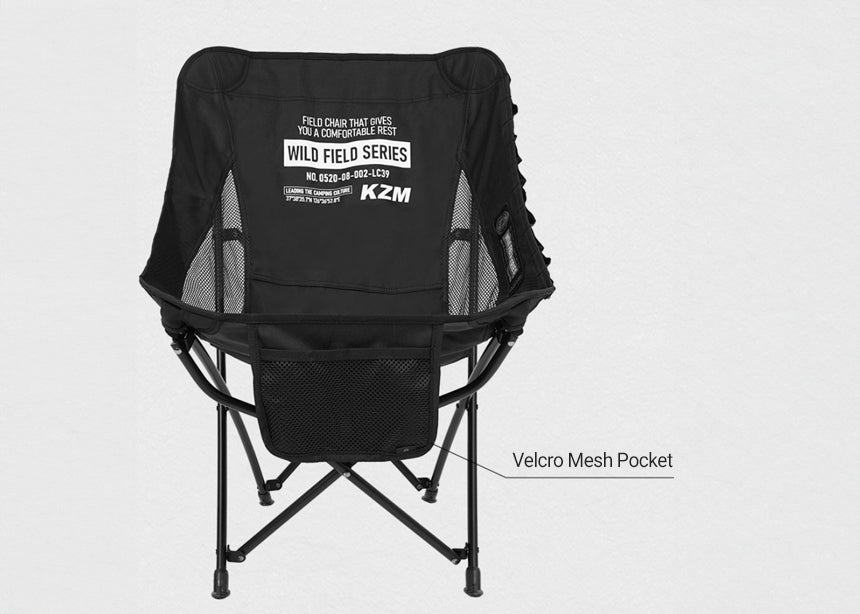 The Field Trekker Chair Low features a velcro mesh pocket at the bottom, allowing neat storage by attaching the rear Velcro when not in use.