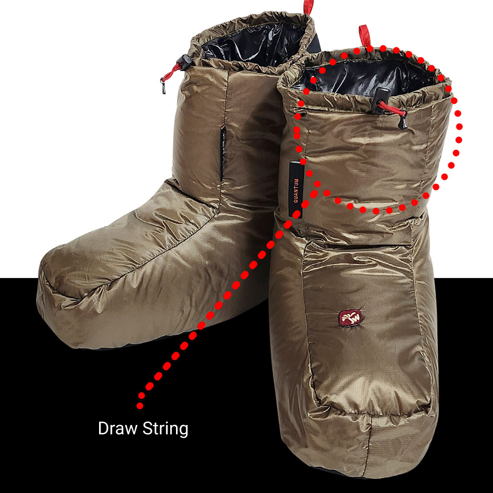 The Premium Goose Down Tent Shoes combine a 90/10 goose down fill with Pertex® Quantum and Nylon Taslan fabric, delivering exceptional warmth, lightweight comfort, and durable protection.