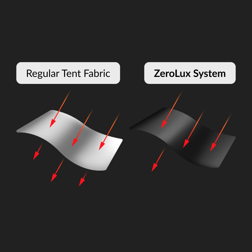 Unlike regular tent fabric that lets in unwanted light, the ZeroLux system blocks brightness so you can fall asleep faster and enjoy deeper rest outdoors. Perfect for campers who want a darker, quieter sleep space—even at sunrise or in well-lit campgrounds.