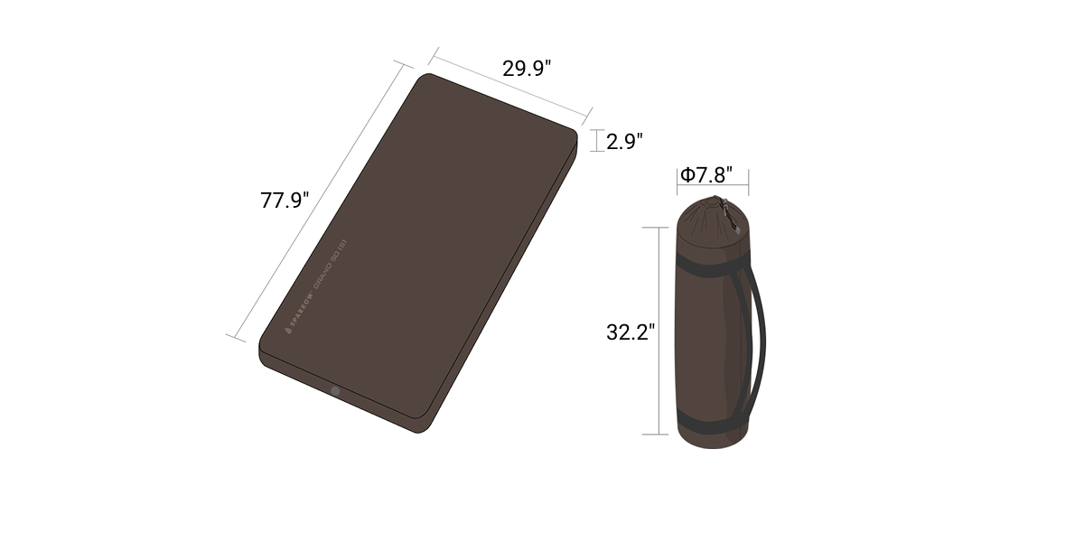 The Grand 50 - Single is a premium single-size outdoor mat with 50D stretch fabric, 2.9"(7.5cm) high-density PU foam, 3D sidewalls, TPU coating, non-slip base, and roll-up storage for ultimate comfort and convenience.