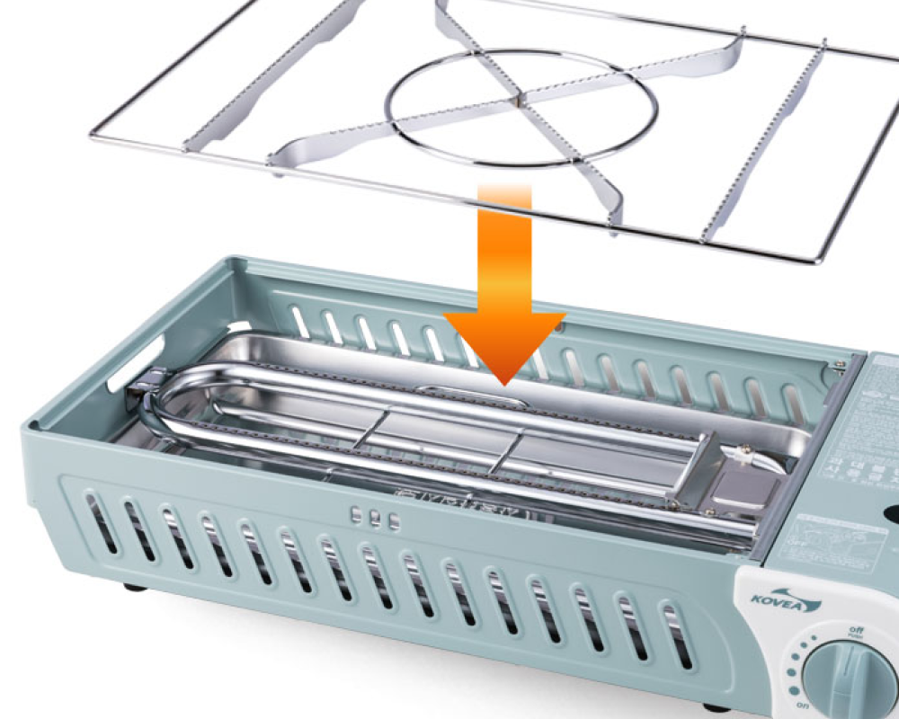Attach the included pot support to use the stove as a gas range. This allows you to place a pot on top for boiling or simmering, easily accommodating a variety of cookware. It's simple to attach and detach, adding to its convenience.