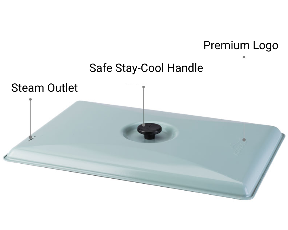 The lid is coated with a durable and heat-resistant ceramic finish, making it safe to use while cooking.