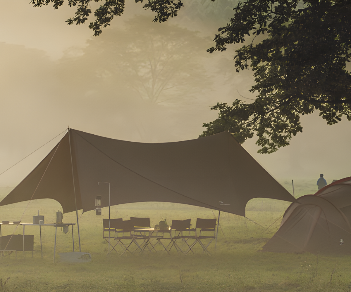 This tarp combines aesthetic appeal with a wide usable area that supports seamless integration with a shelter or tent. Its structure offers versatile connectivity, allowing you to expand your outdoor living space with ease.