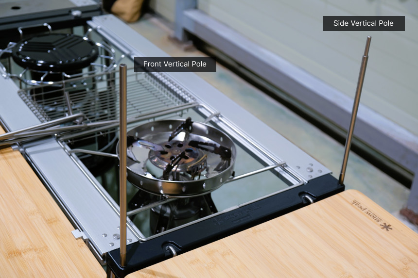 Connect the main Kitchen Hanger with the Side Poles. The kitchen hanger extension pole may require for 4 unit IGT Frame.