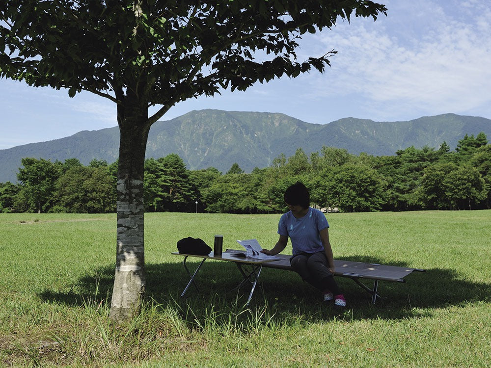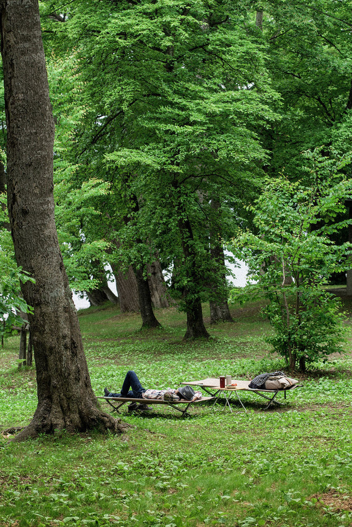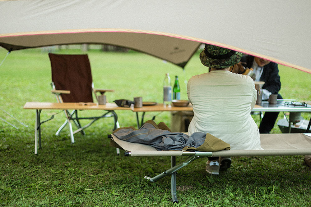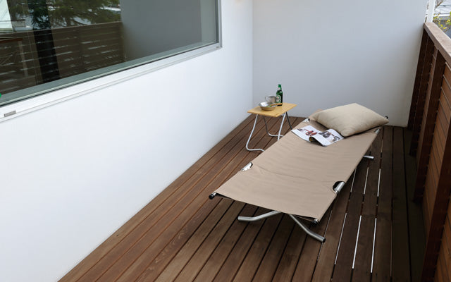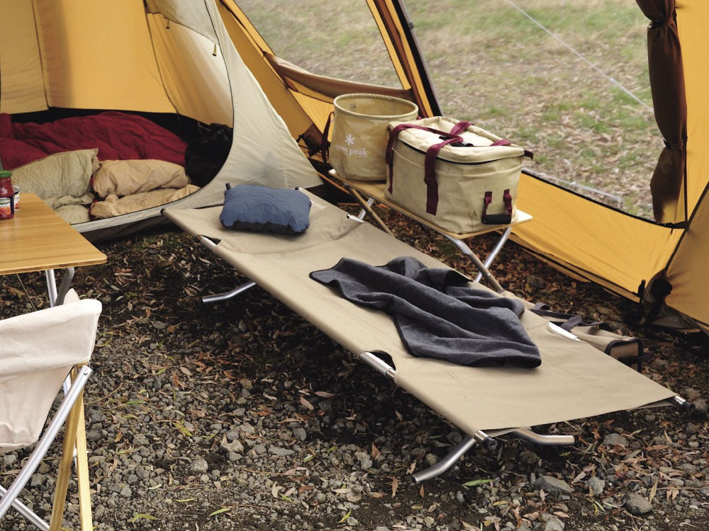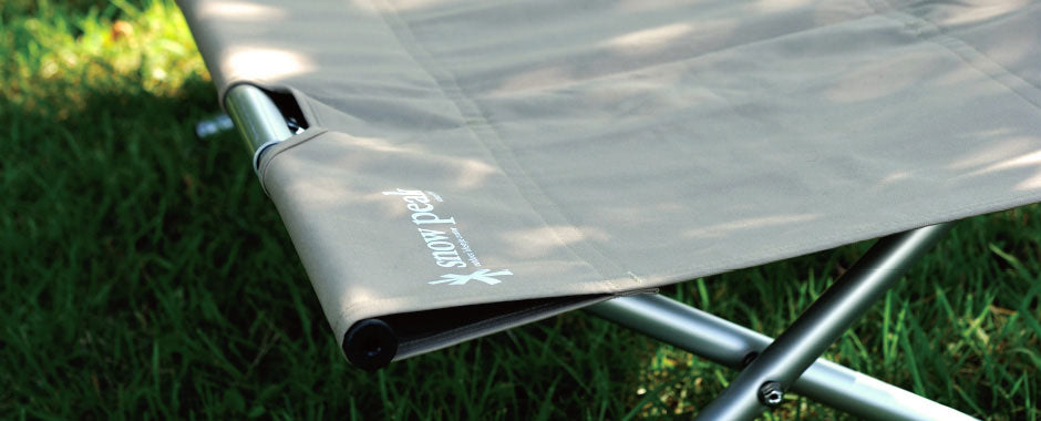 Le lit haute tension est doté de pieds pliables en aluminium et d'un tissu confortable mais robuste.
