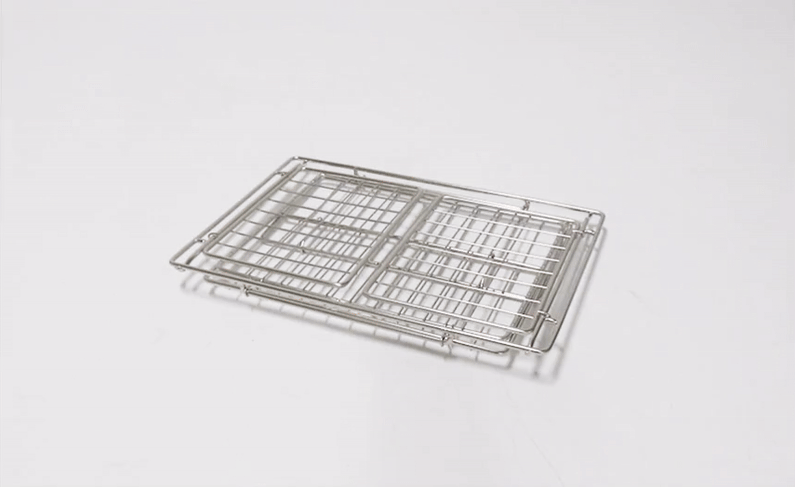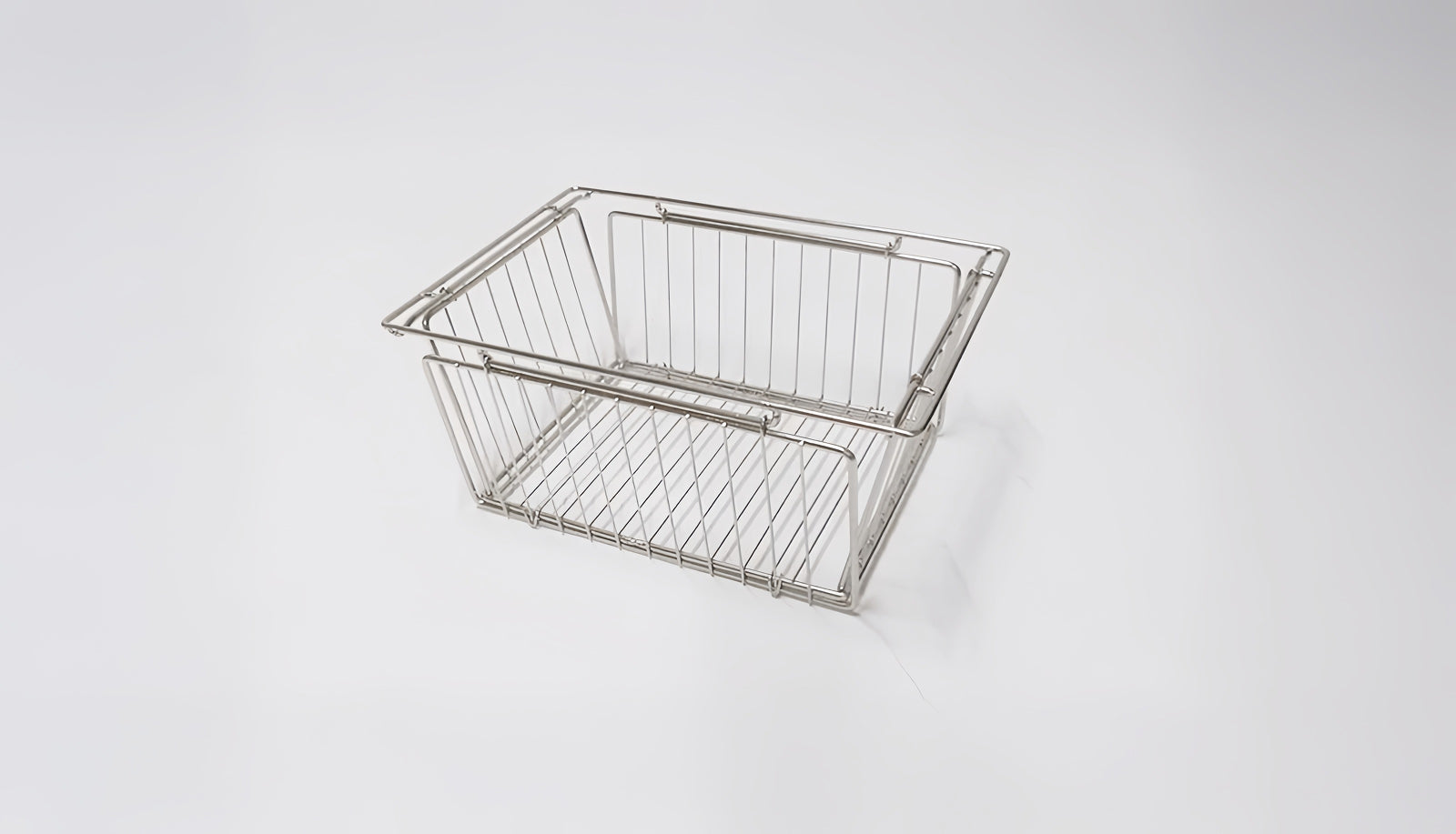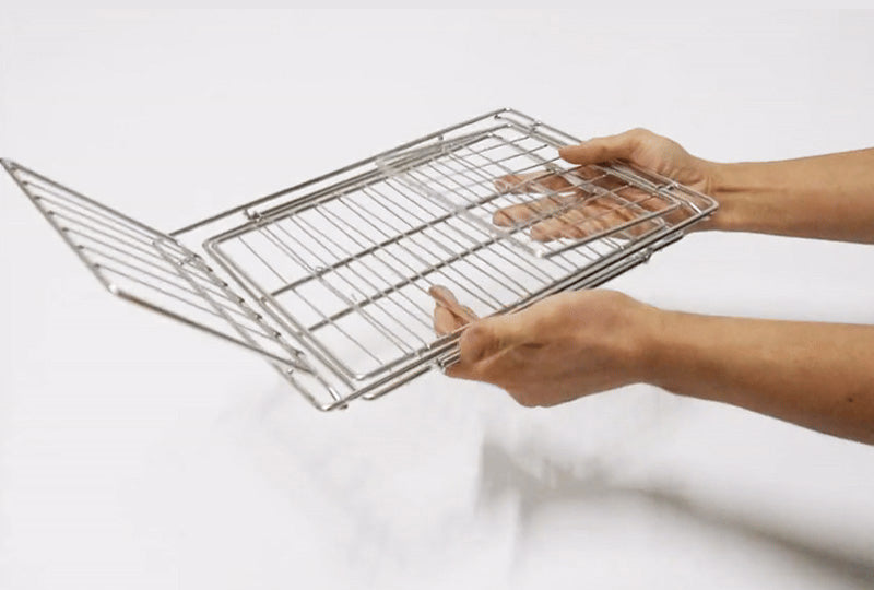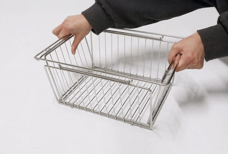 A compact and durable folding basket compatible with IGT setups, made of rust-resistant 304 stainless steel and includes a dedicated pouch for easy storage and transport.