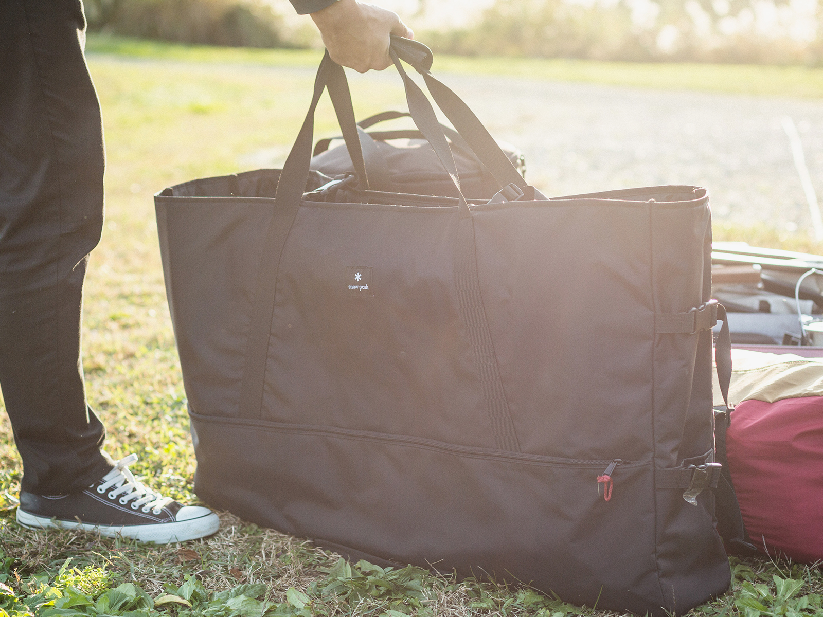 The Snow Peak Jikaro Carrying Case is made of reinforced nylon and is designed to securely store and transport the Jikaro Table. It includes both internal and external pockets for additional storage and works with extension legs and grill accessories.