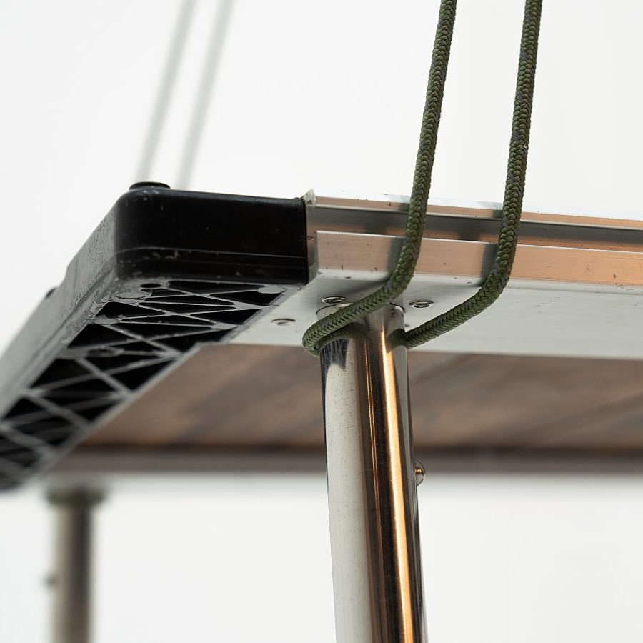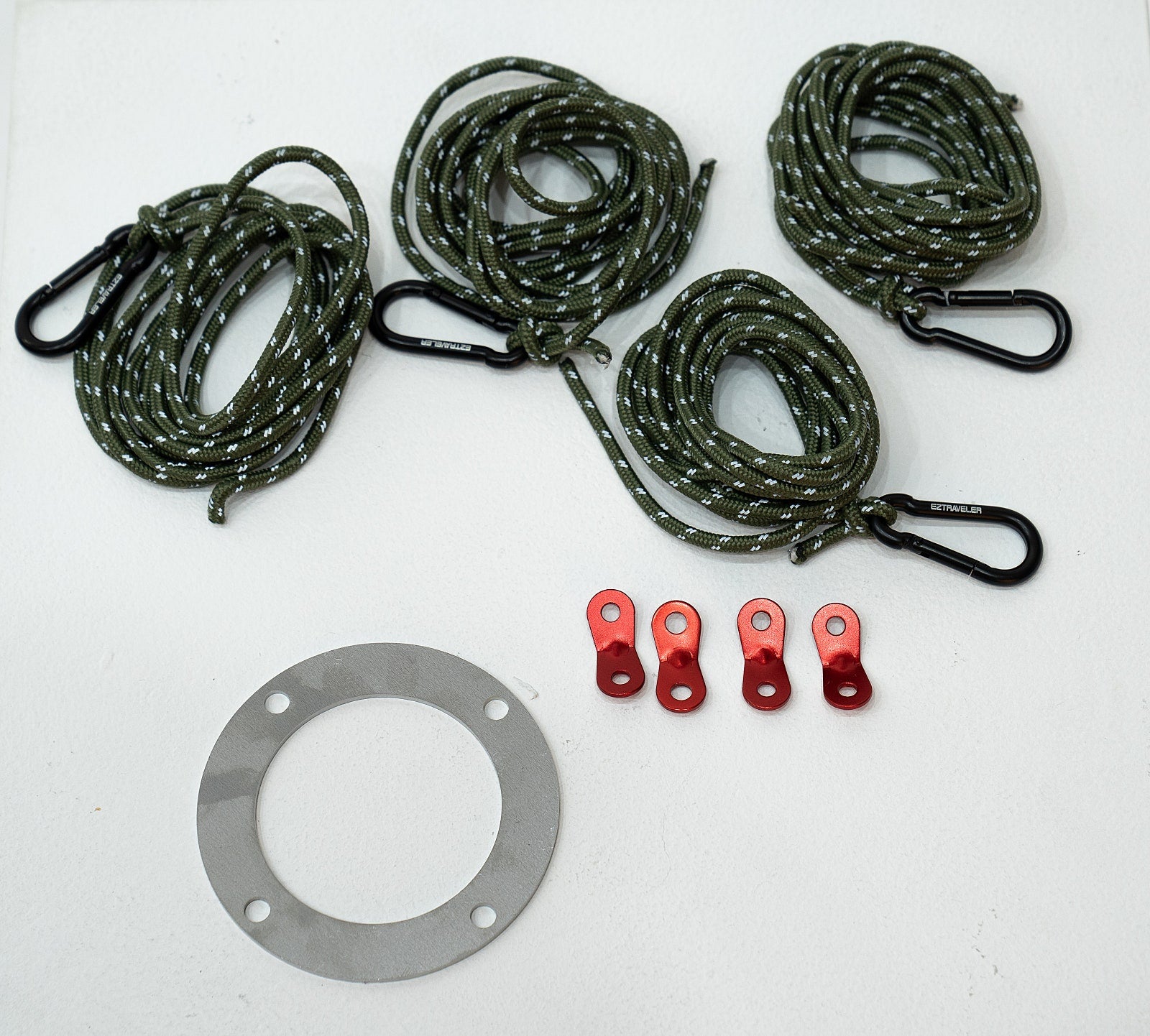 - Not included: strings * 4ea, each cut to 2.5 meters in length (4-5mm thickness recommended), stoppers * 4ea, carabiners * 4ea.