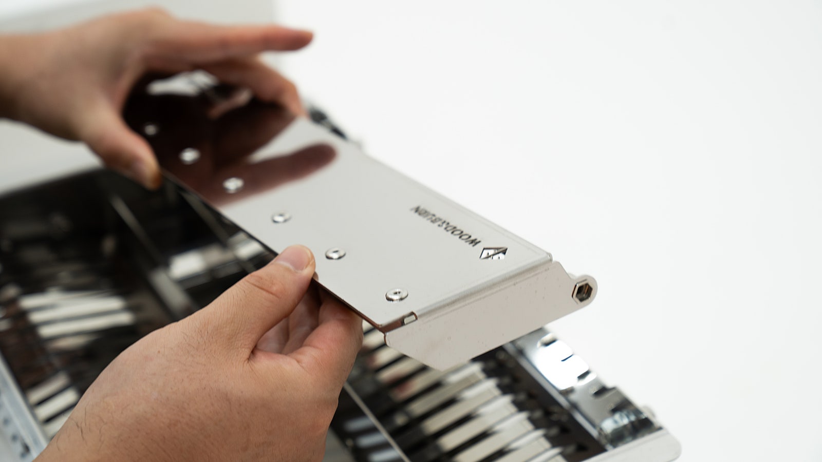Attach the Lightbox directly to the slots where the flaps were removed. As you align the Lightbox, ensure that the holes on both the Lightbox and the main body are perfectly matched.