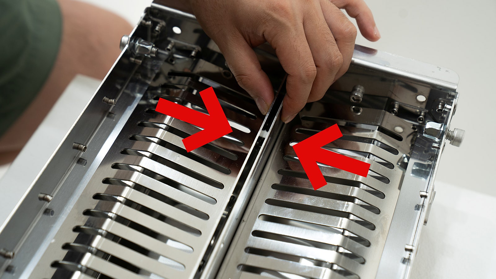 Carefully push the combustion plates inside the main body toward each other. Make sure they fit snugly without leaving gaps, as this will help with efficient combustion and even heat distribution.