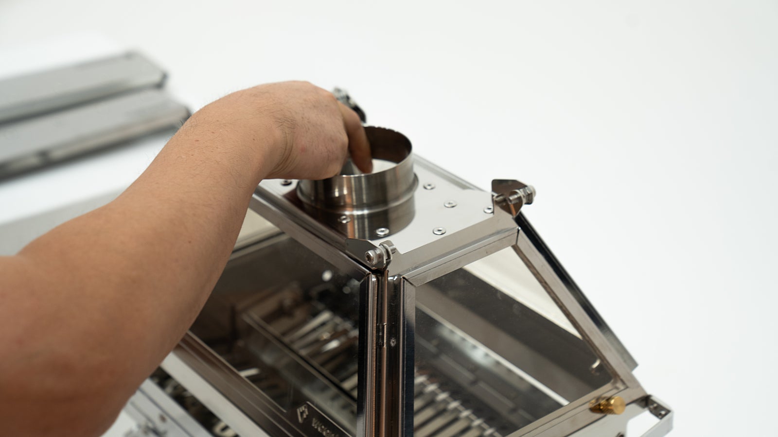 Start by attaching the 80Ø chimney to the top of the Light Box. The minimum recommended height for the chimney is 2M, with 3M being ideal for optimal performance.