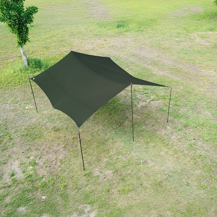 Crafted from durable nylon ripstop fabric with a silicone coating and black pigment finish, the tarp offers enhanced UV protection and superior shading performance, ensuring a cool and comfortable environment even in the peak of summer.