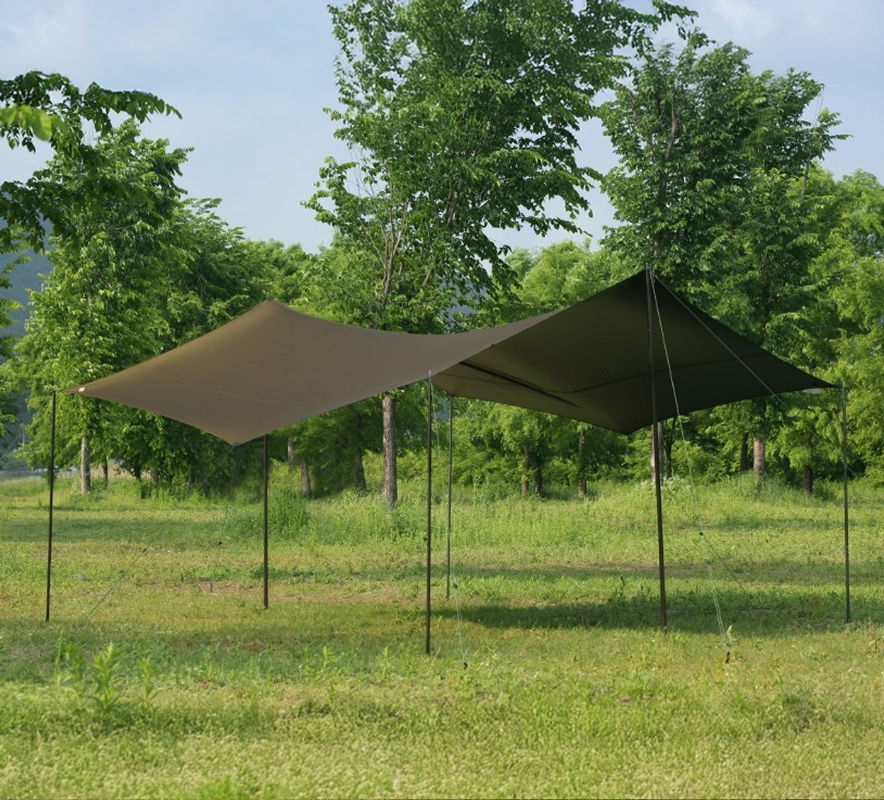 Crafted from durable nylon ripstop fabric with a silicone coating and black pigment finish, the tarp offers enhanced UV protection and superior shading performance, ensuring a cool and comfortable environment even in the peak of summer.