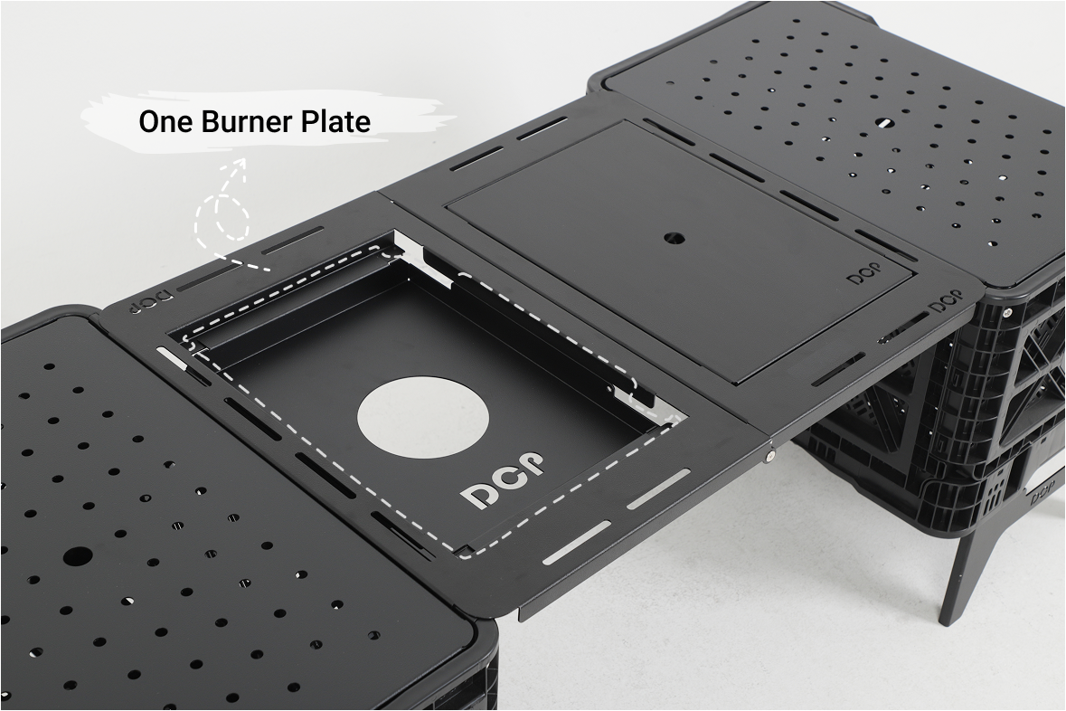 The One Burner Plate is your IGT-ready solution for single-burner setups—simple, sleek, and smart. Use either side depending on your preference or layout, giving you flexible functionality with no added bulk. With a range of color options, it seamlessly blends into your custom camp setup while keeping everything clean and compact.