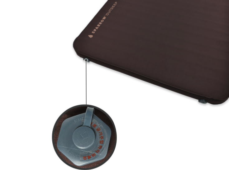 Open the screw-type valve and position the internal swing valve as shown in the image. Air will flow in, and the mat’s foam will expand.