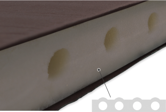Made with 2.9"(7.5cm) high-density PU foam offering excellent resilience, it provides a more comfortable and pleasant sleeping environment not only outdoors on uneven ground but also indoors. The perforated surface forms an air layer