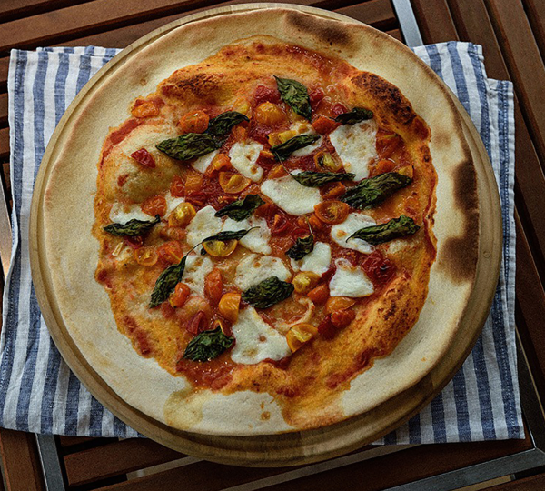 The deep wooden plate serves as a versatile dish for serving snacks, with its bottom surface designed to accommodate pizzas. Its design allows for easy handling and presentation of various foods.