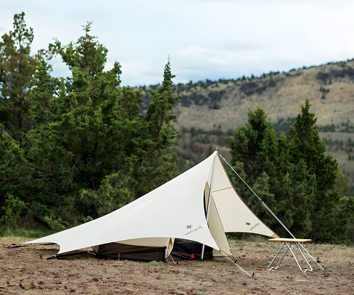 This Penta Tarp Ivory is a minimalist shelter designed for one to two campers, offering durable, water-resistant protection in a compact format. It features a unique paddle-use-as-pole design and blends seamlessly with natural surroundings.
