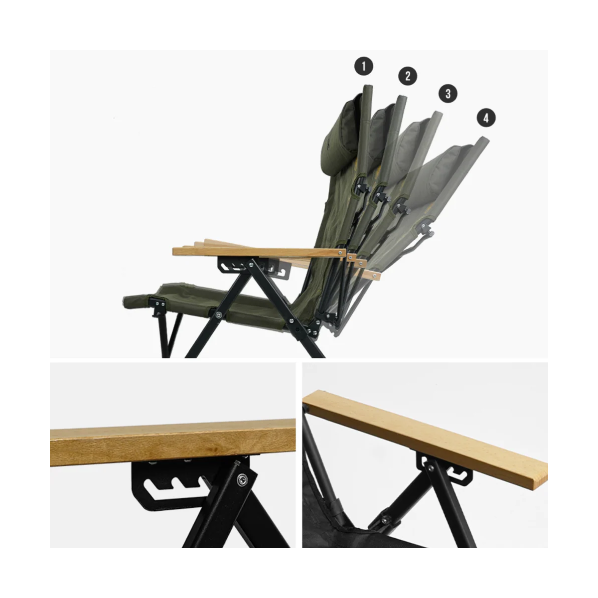 This relax chair offers four adjustable angles for optimal comfort and stability while seated. It features a premium aluminum frame and durable woven polyester material for excellent durability, and is available in three colors—Black, Olive Khaki, and Metal Gray—to suit your preference.