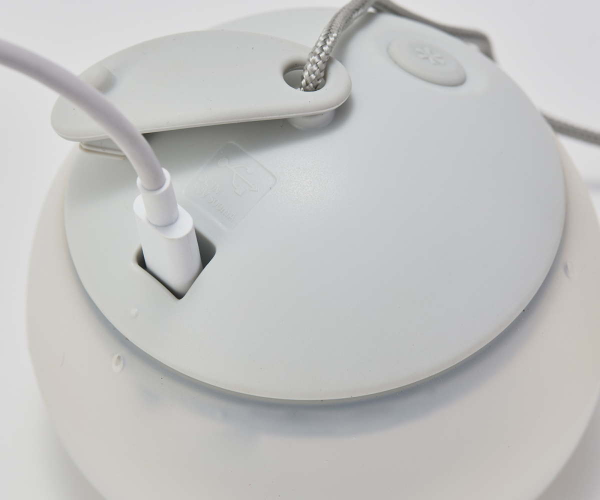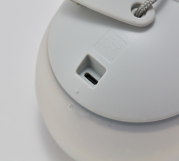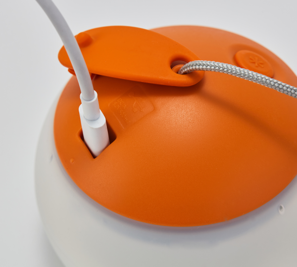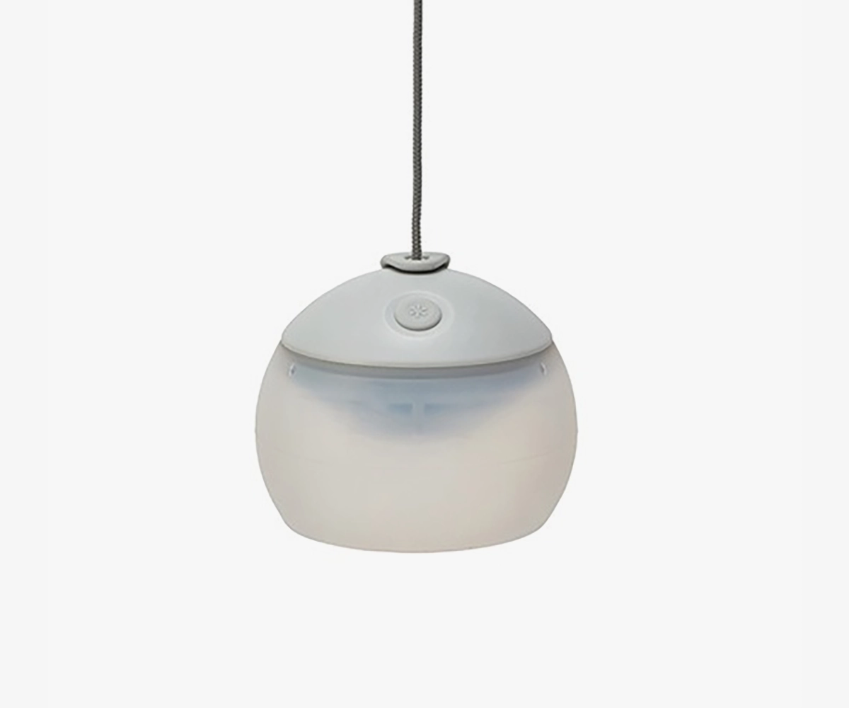 The Rechargeable Hozuki Lantern is a USB-C powered, weather-resistant LED lantern with a maximum output of 200 lumens and a built-in hook for hanging. Designed in Japan, it offers multiple lighting modes including a candle-flicker effect and a sleep mode that conserves energy when ambient sound is absent.