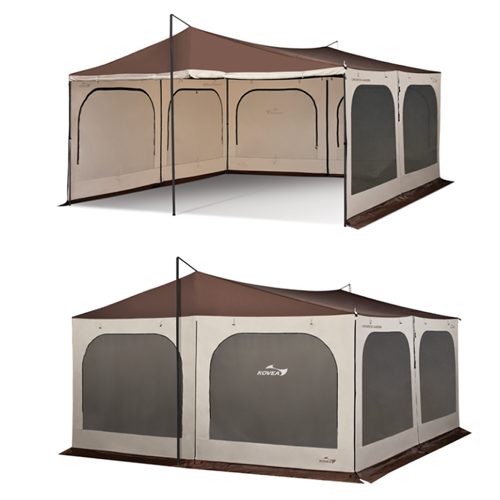 The generous dimensions of the Recta Garden allow ample room for arranging dining tables, chairs, and all your essential camping gear. Utilizing the screen walls creates an all-weather outdoor living area perfect for any season.