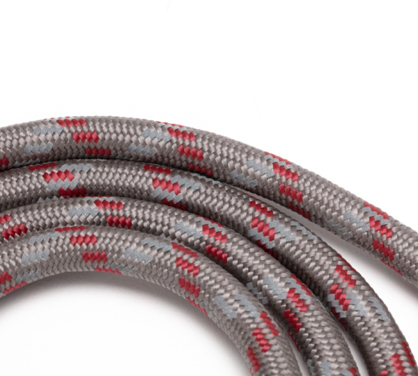 The SP Rope Lead, designed in Japan, is a durable braided leash with a metal clip and neoprene-covered seams. Its thickness varies by size to provide secure handling for different dog weights.