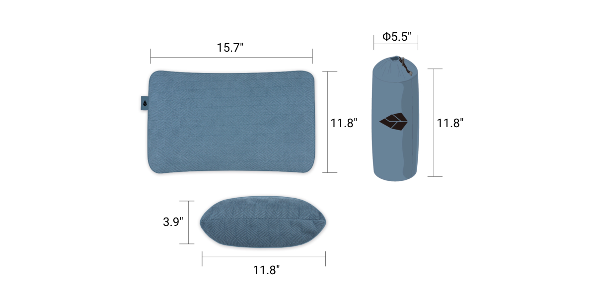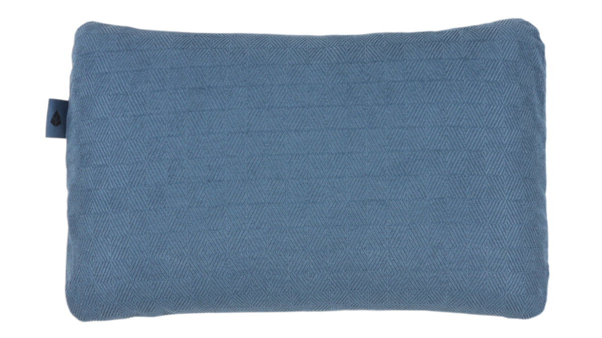 The Spring Pillow features 690 g of solid molded memory foam with Aircell perforation, a double removable cover, cross-pattern fabric to prevent slipping, and elastic straps with cord locks for compact storage.