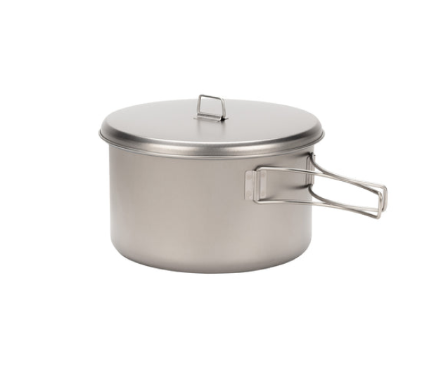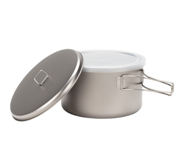 The Titanium Cook & Save is Snow Peak’s largest titanium pot with a 2-liter capacity, ideal for group cooking. It comes with a titanium lid for cooking and a plastic lid to preserve leftovers, ensuring long-lasting use for countless camp meals.