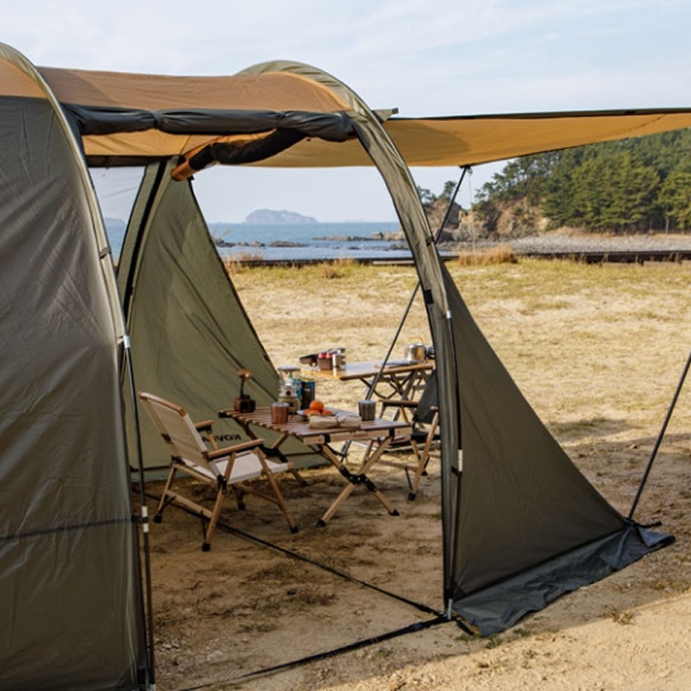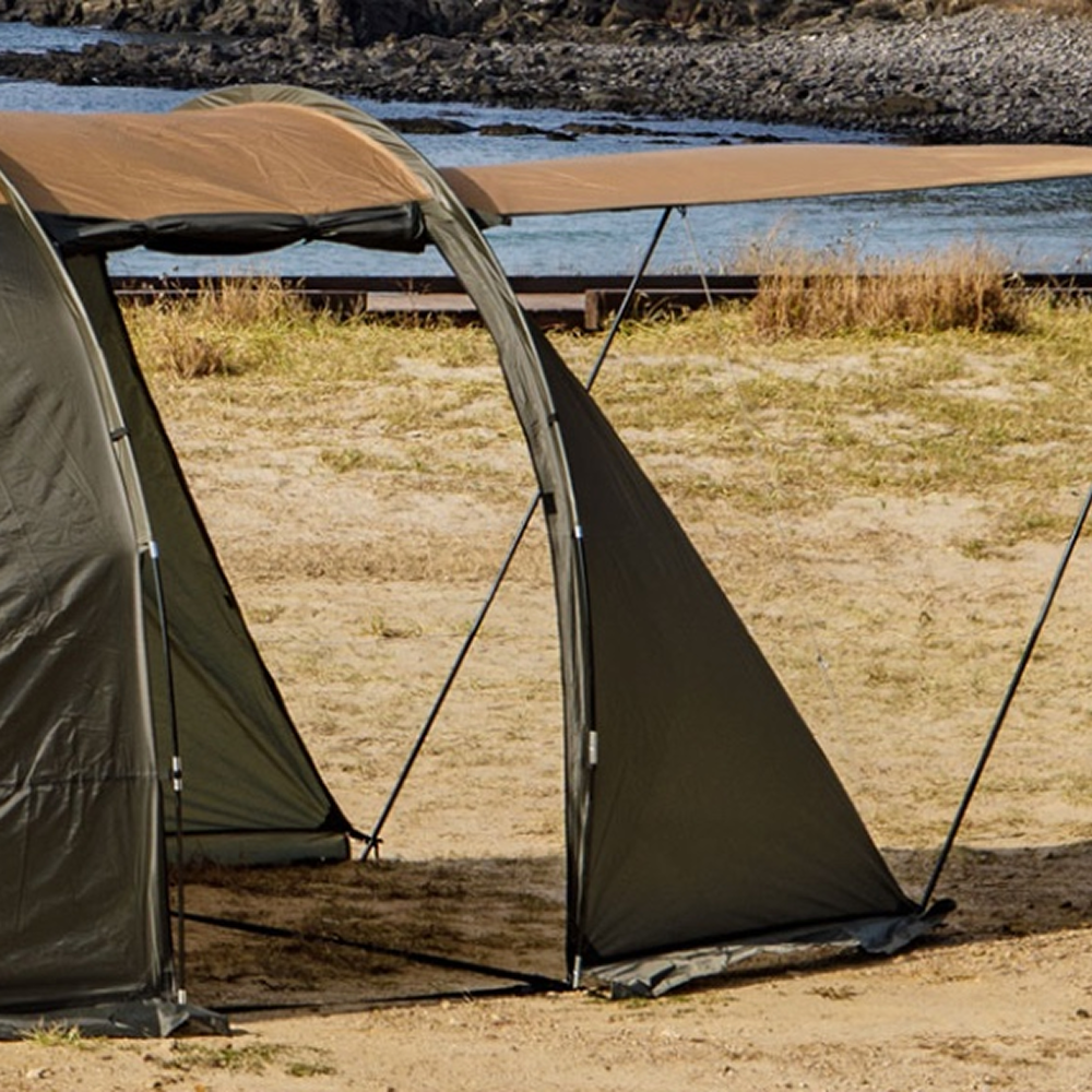 The side doors function as convenient entry points and can also be extended into sheltered canopies using pitching poles (sold separately). This dual functionality provides extra shaded space and maximizes the overall versatility of the shelter.