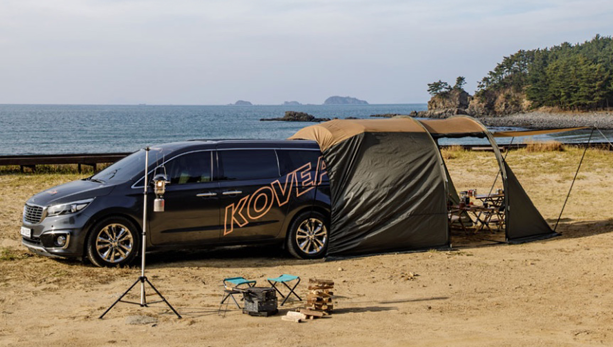 The Touring Car Shelter M2 is a spacious, two-pole tunnel tent that offers a highly adjustable, seamless connection to various vehicles, featuring stand-up height and a unique groundsheet that seals the bumper area against drafts and bugs.
