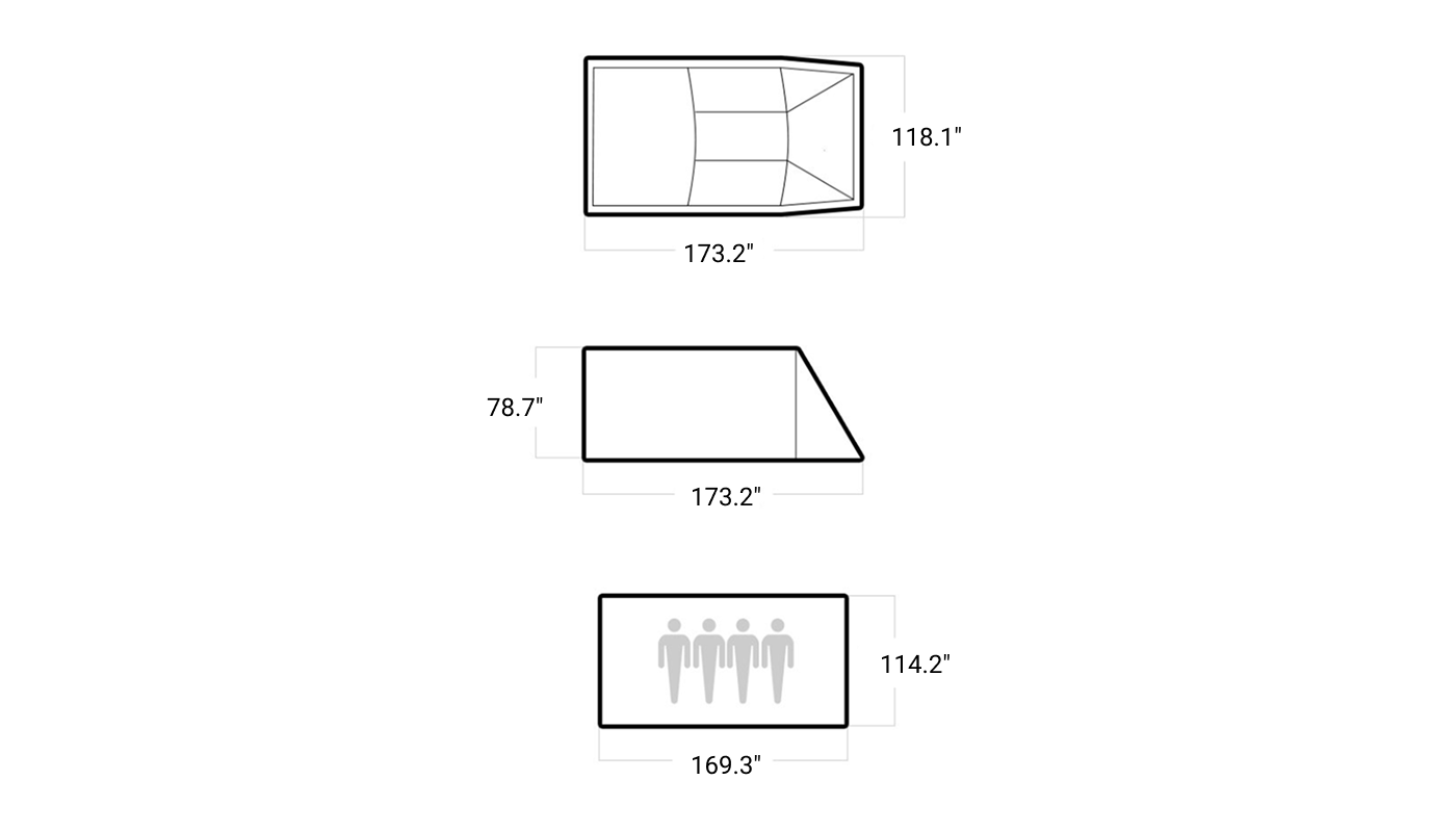 • Ground Sheet: 169.3"(W) × 114.2"(D)