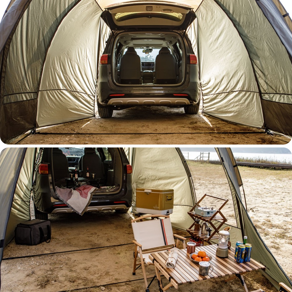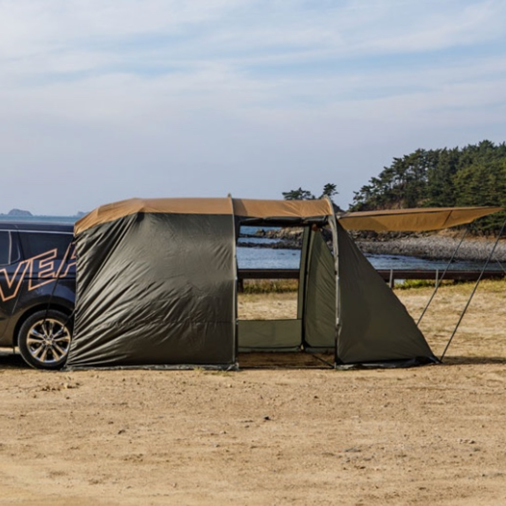 The integrated door enhances functionality when connected to your vehicle, while the utilization of uprights and side walls provides a perfect balance of privacy and openness. This design allows for seamless use as both a car camping setup and a standalone shelter.