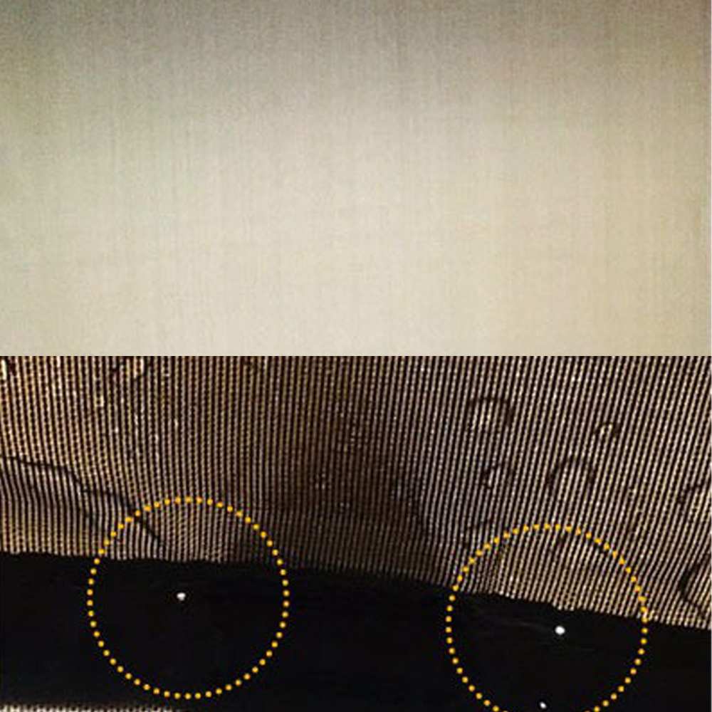 The shimmering effect in sunlight is caused by the fabric weave, not a defect. Small holes at coated or stitched areas do not cause leaks. These are not grounds for return or defect claims.