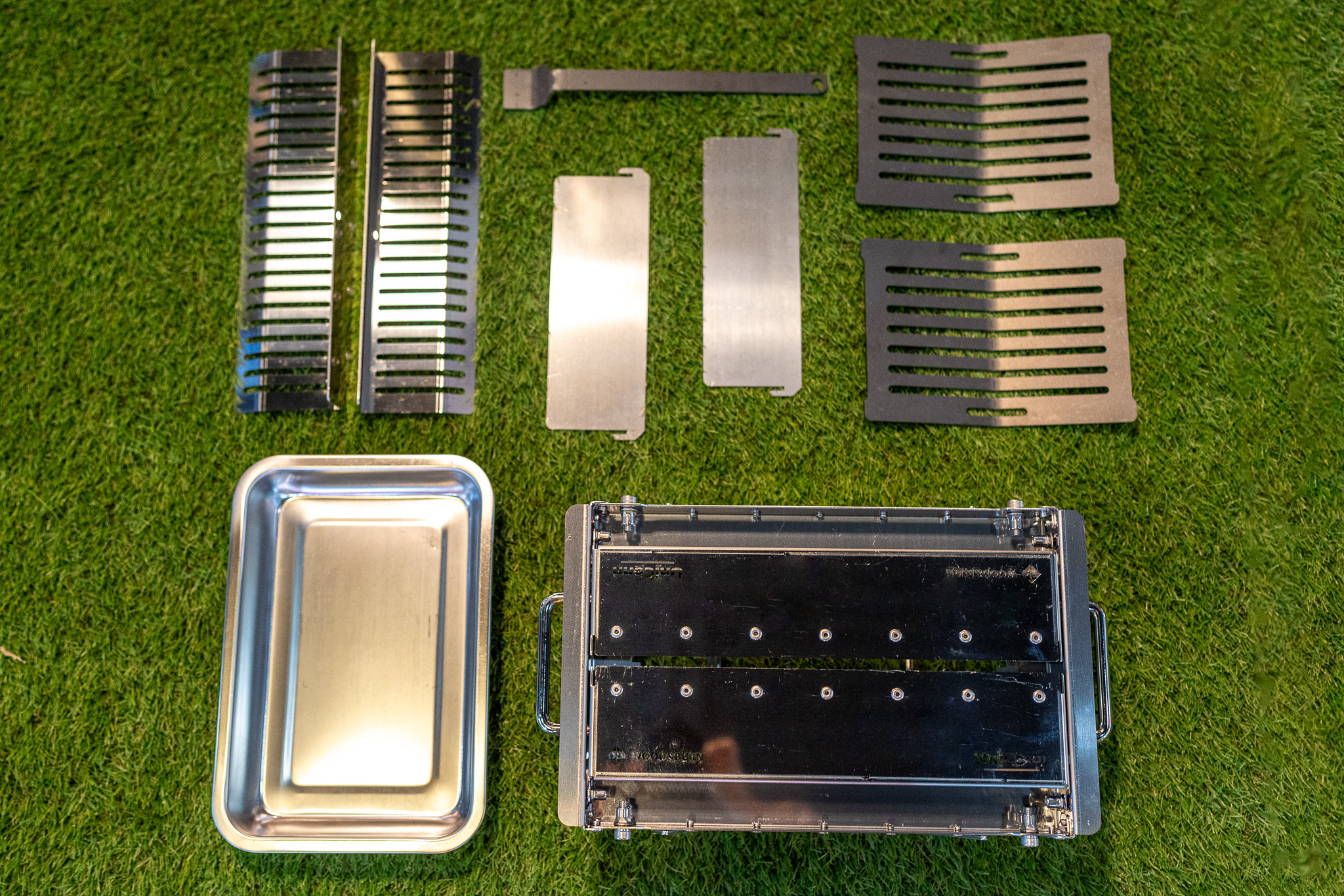 Default package includes: Main body, Main Tray, Combustion plate 2pcs, Side wall 2pcs, Iron Grill 2pcs, Grill Lifter