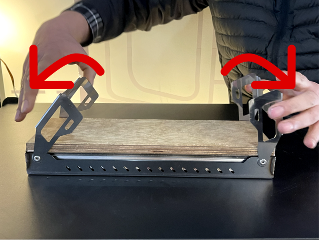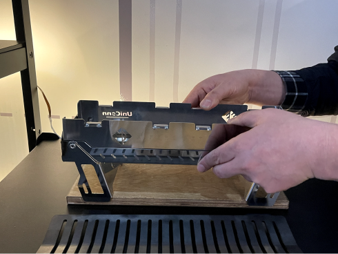 Take out the wooden stand, combustion plate, and grill inside, then place the main body on the wooden stand.