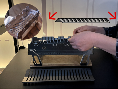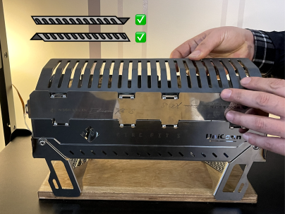 Put the combustion plate underneath the main body, following the direction shown in the picture. Then, put charcoal or coal fuel on top of it.