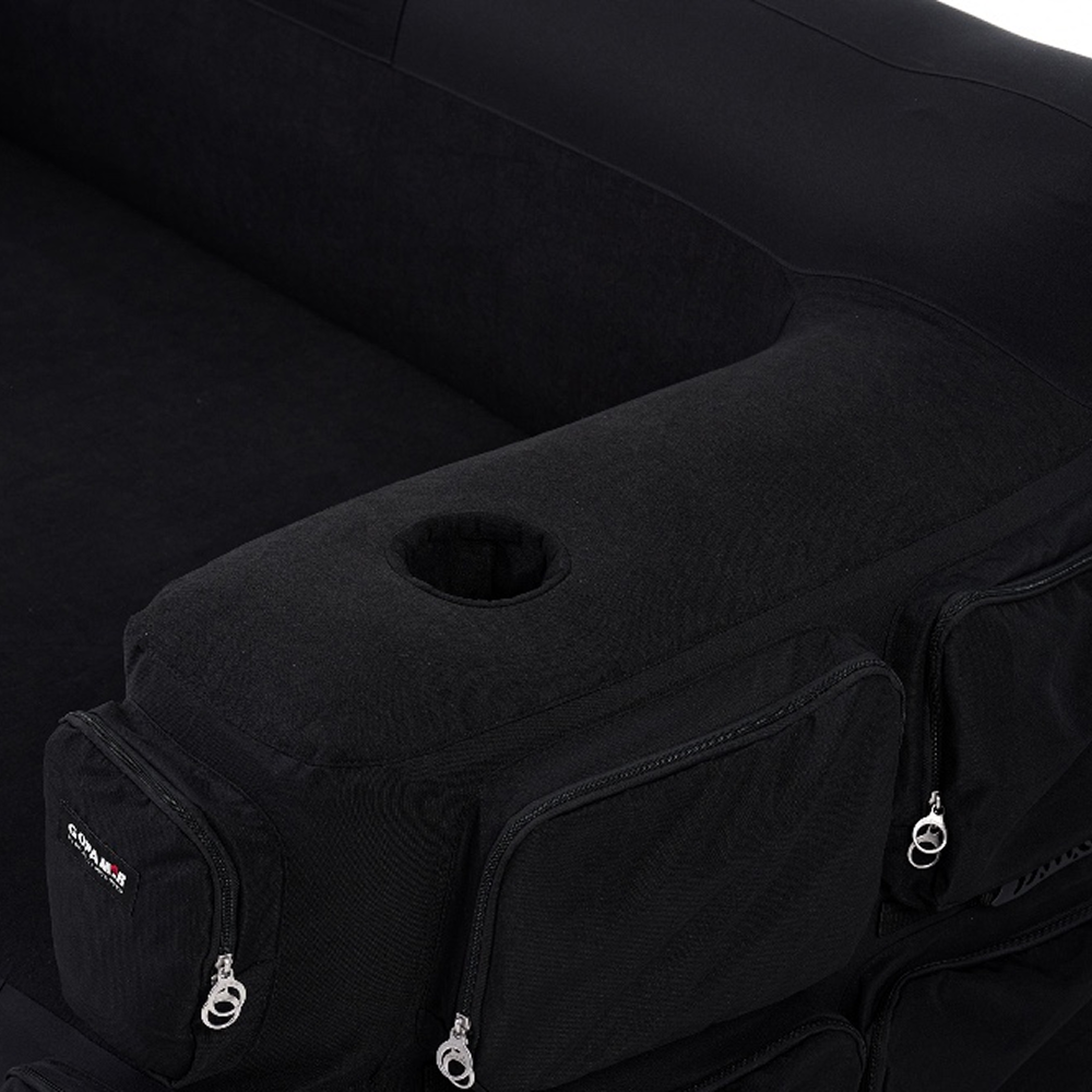 The SF180 Air Sofa features a one-touch dual-valve inflation system for quick setup, with built-in cupholders and side pockets for ultimate convenience.