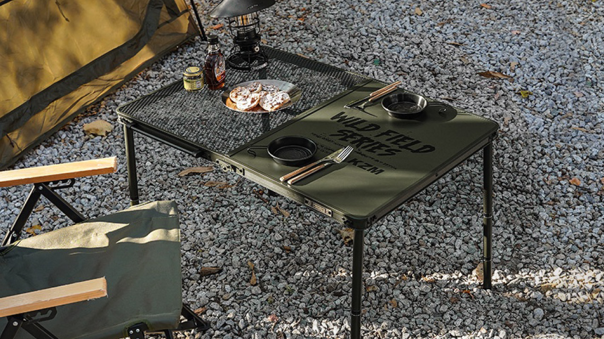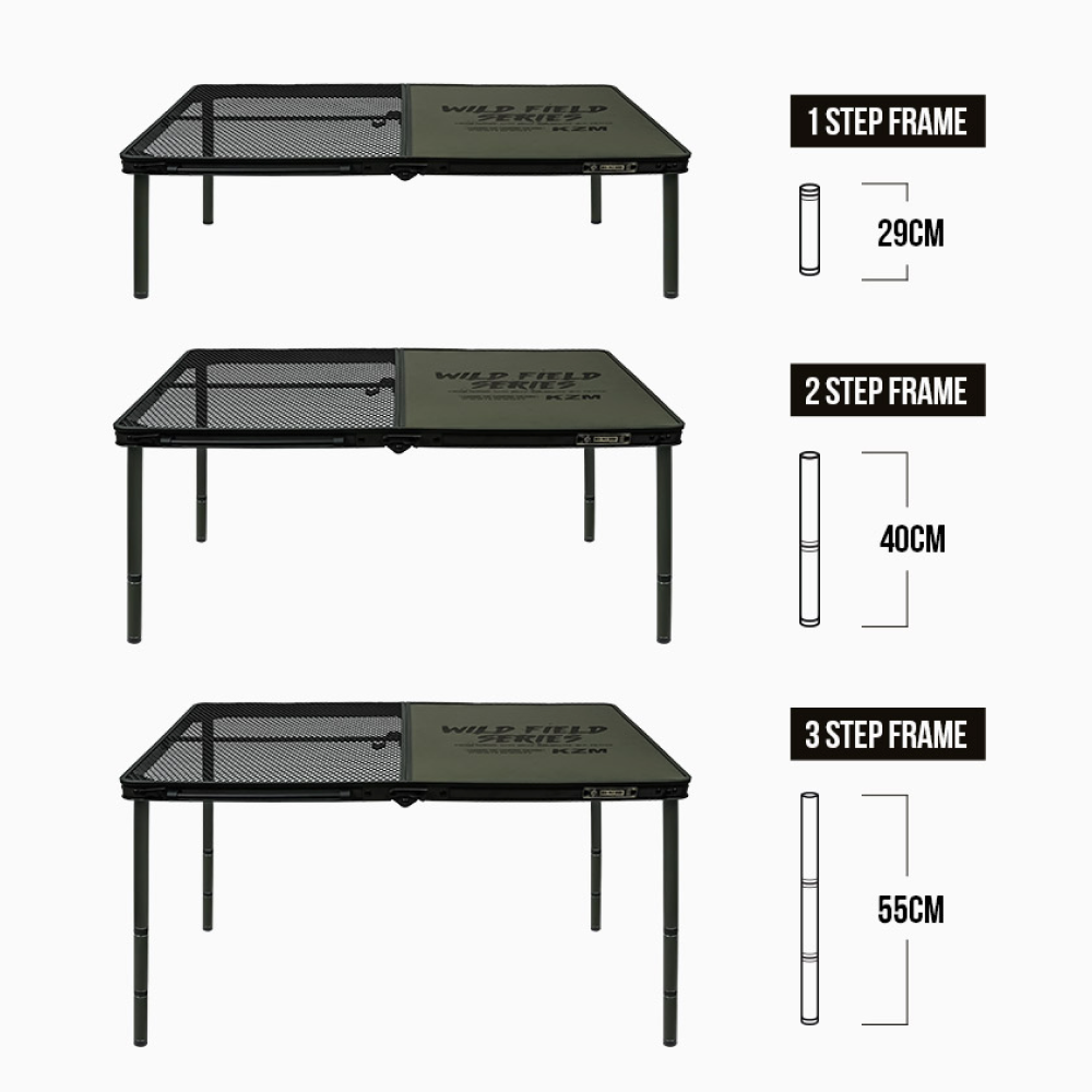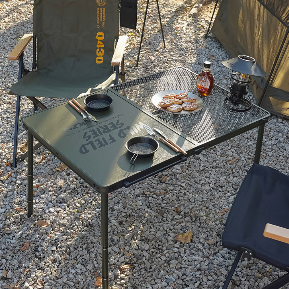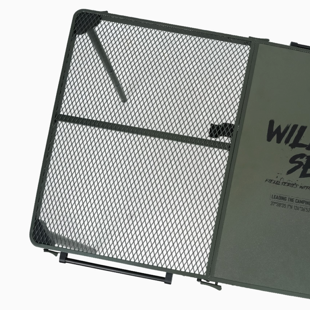 The Wild Field 2 Folding Table is a durable, foldable camping table with a sturdy steel mesh, aluminum frame, three adjustable height options, and Infinity System connectivity for versatile outdoor use.