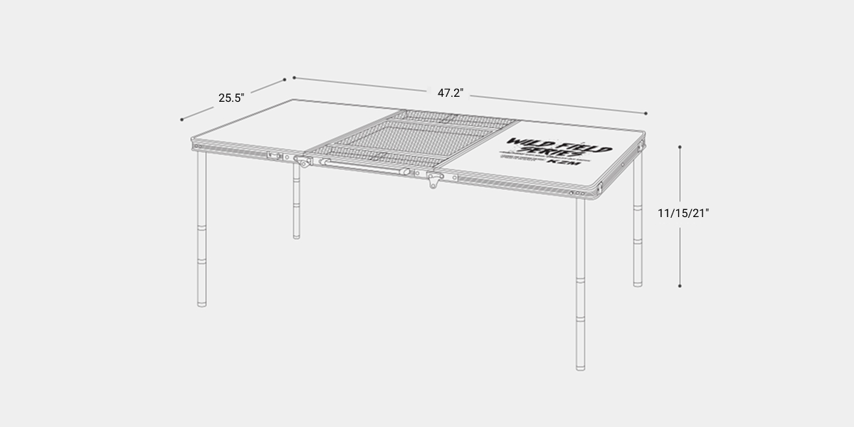 When connected with the Wild Field Low BBQ Table, it is only available in the 2-level length adjustment mode.